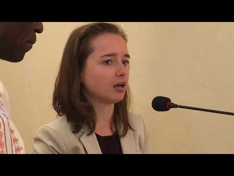 MTAZAME Kaimu Balozi wa Poland nchini Tanzania Dk.Evelina Lubieniecka akizungumza katika mdahalo wa wafanya biashara kwenye Tamasha la Majimaji Selebuka ndani ya ukumbi wa Manispaa ya Songea.